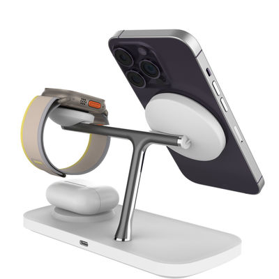 올인원 무선 충전기는 세련되고 현대적인 디자인을 갖추고 있어 집이나 사무실에 완벽하게 추가됩니다. 컴팩트한 크기 덕분에 쉽게 보관하고 운반할 수 있어 항상 이동 중인 사람들을 위한 완벽한 충전 솔루션이 됩니다.